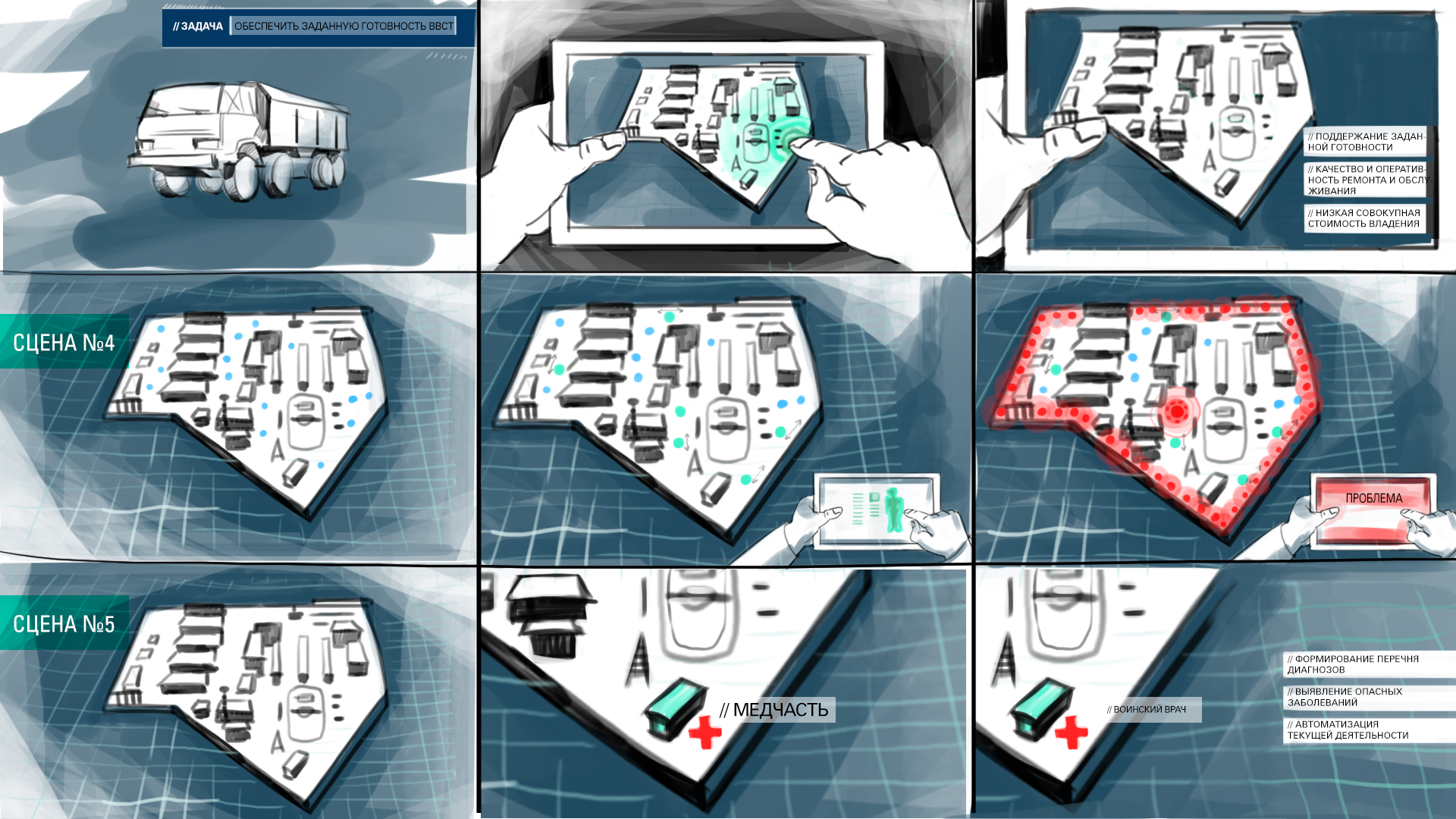 В рамках реализации проекта разработана стилистика ролика проведено 3d моделирование более 20 единиц боевой техники, 7 локаций, проведено текстурирование и 3D анимация. По окончании анимации сделано озвучание и монтаж ролика
